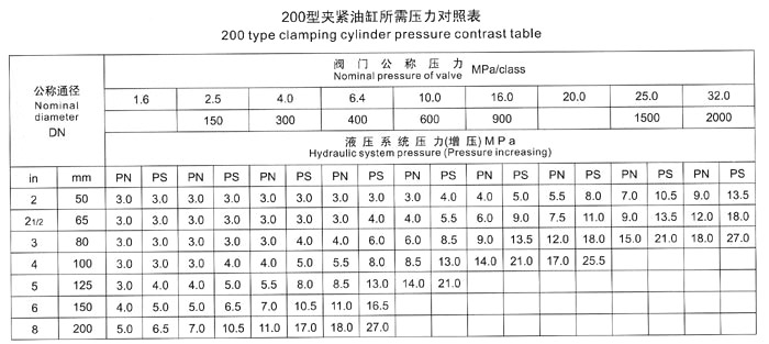 The test range of valve nominal diameter and nominal pressure for JLT-200 model