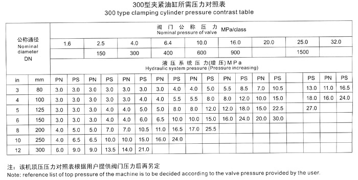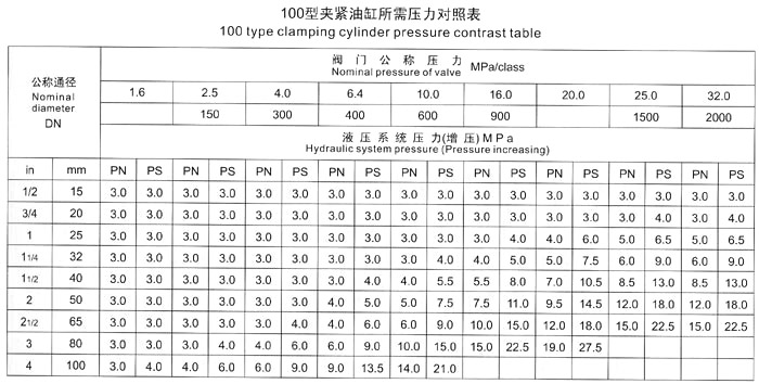 五、測(cè)試閥門(mén)時(shí),首先根據(jù)被試閥門(mén)試驗(yàn)壓力,要求參照《壓緊油缸所需壓力對(duì)照表》中液壓壓緊系統(tǒng)壓力值,進(jìn)行增壓壓力調(diào)節(jié),嚴(yán)禁增壓壓力值超高、防止被試閥門(mén)變形損壞。
