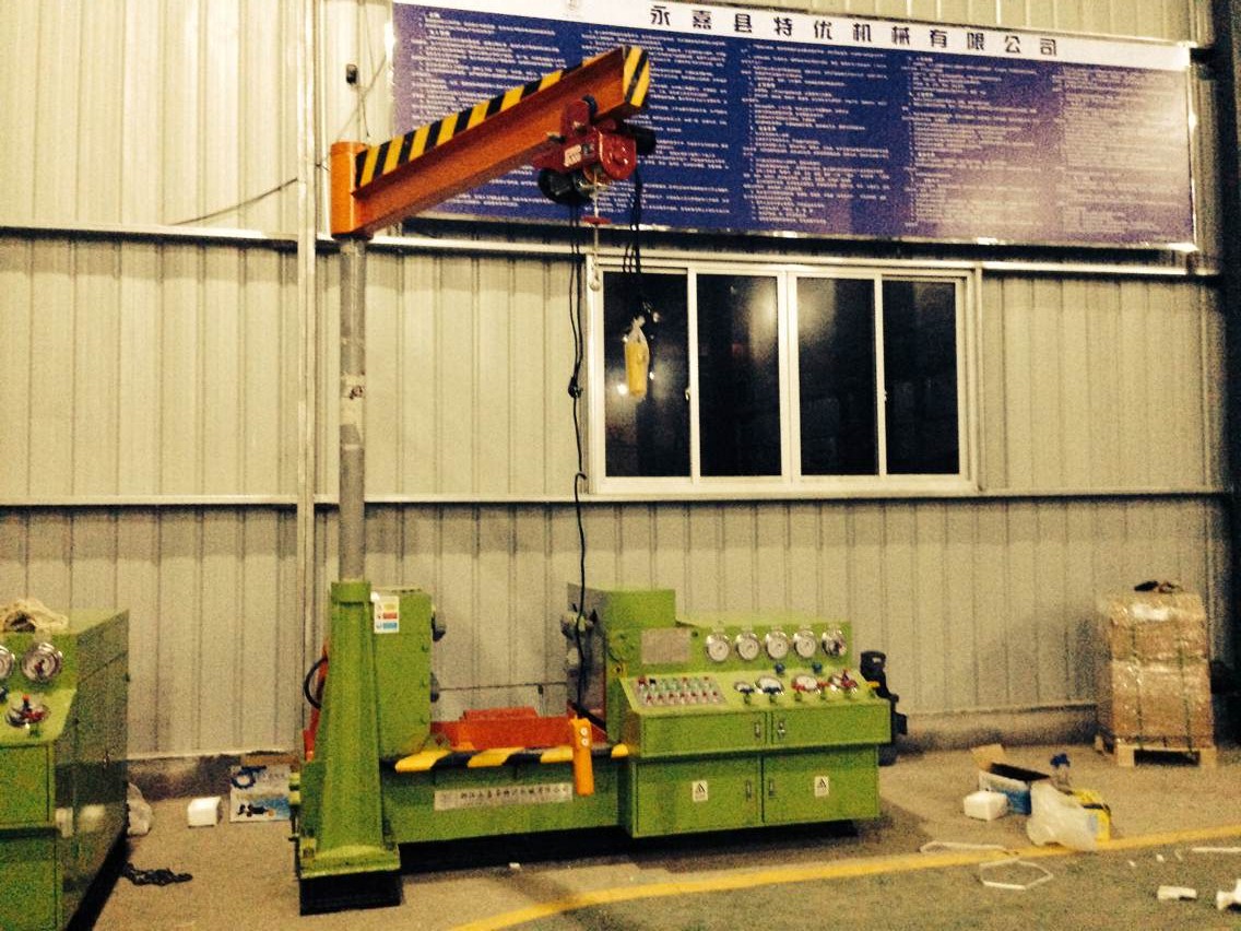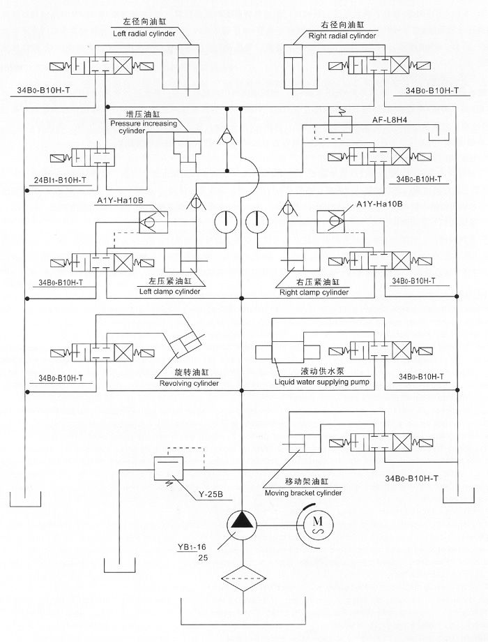 三、接通電源,按油泵啟動(dòng)按鈕,檢查電機(jī)轉(zhuǎn)動(dòng)方向,是否正確(順時(shí)針方向)進(jìn)行5—1 O分鐘空載運(yùn)轉(zhuǎn)后,調(diào)節(jié)油泵壓力在5 0MPa進(jìn)行試機(jī),各種動(dòng)作,檢查各管路有無泄漏,發(fā)現(xiàn)不良現(xiàn)象,應(yīng)立即停機(jī)排除。