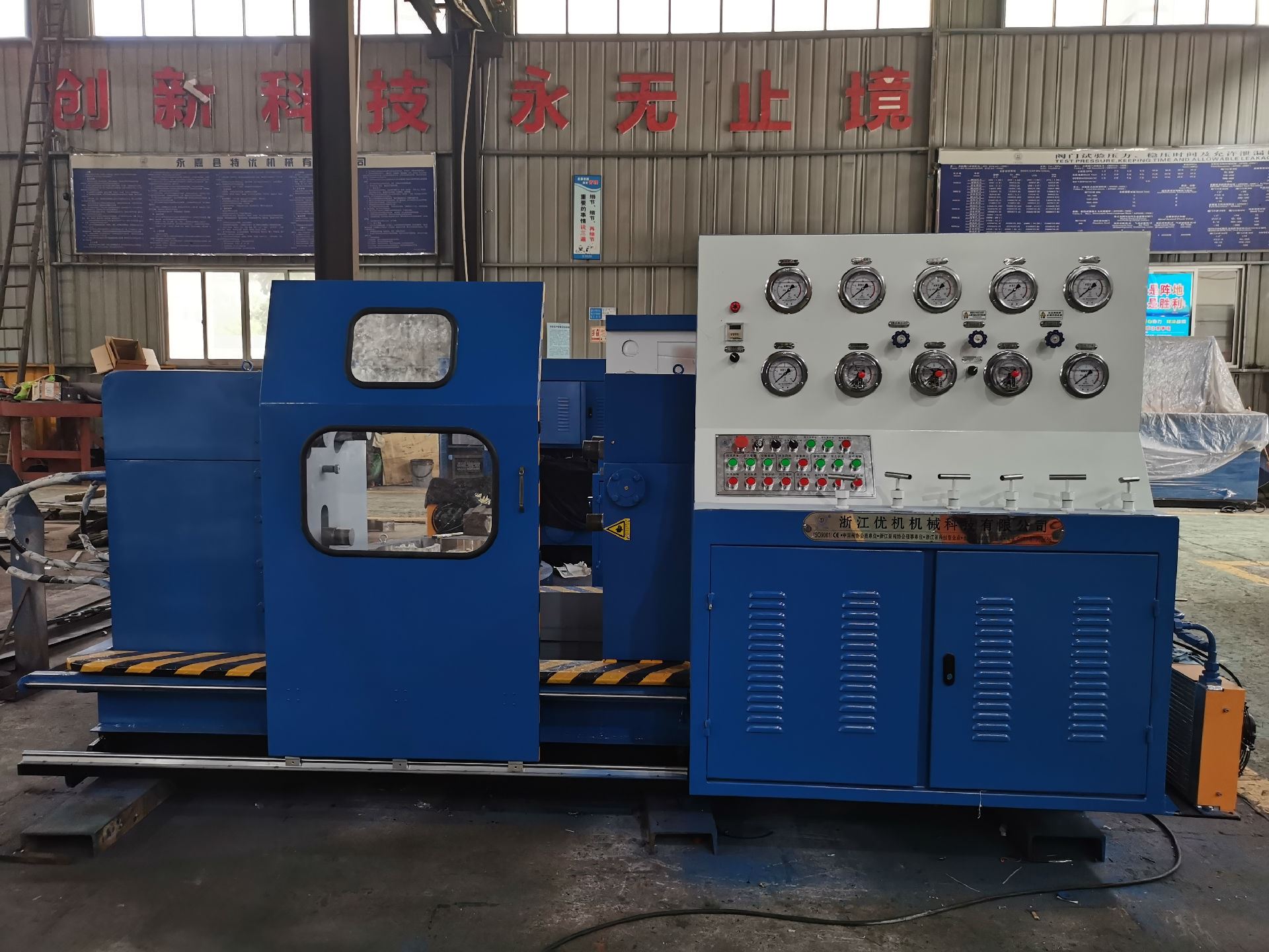 本機(jī)集機(jī)電、液壓、試壓、液體介質(zhì)貯存循環(huán)使用于一體,具有功能完善、性能穩(wěn)定、自動(dòng)化程度高等特點(diǎn)。廣泛用于公稱通徑DNl 5-1000mm的直通式法蘭及螺紋連接各類高、中、低壓閥門的強(qiáng)度、密封和泄漏量等各項(xiàng)性能測試。測試介質(zhì):水、氣、油。最高密封試驗(yàn)壓力 32.0MPa,強(qiáng)度48 0MPa。